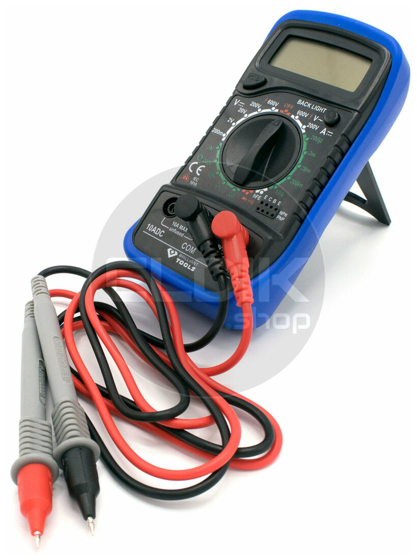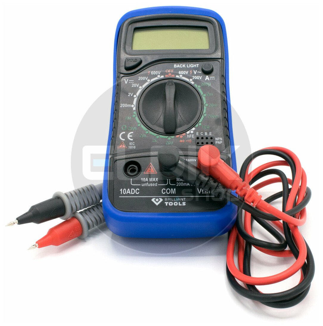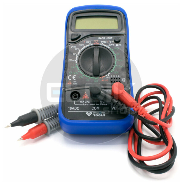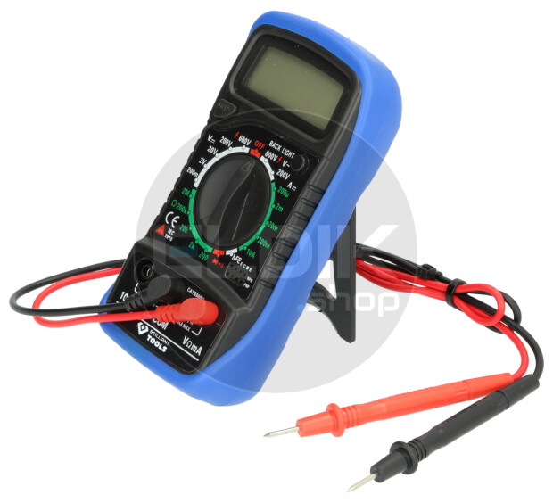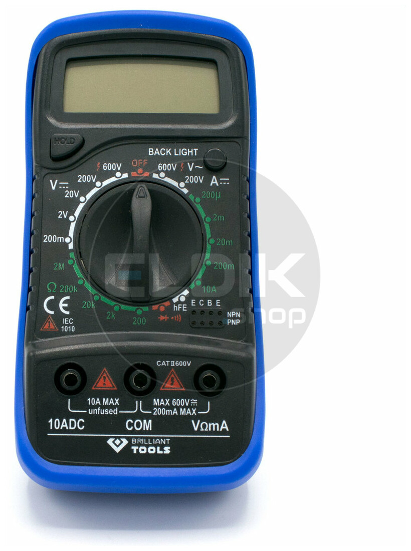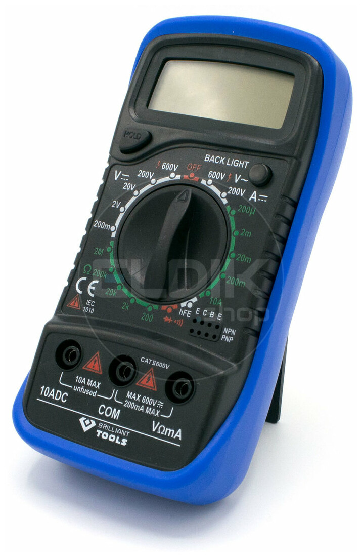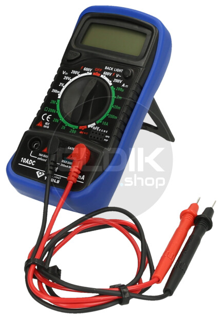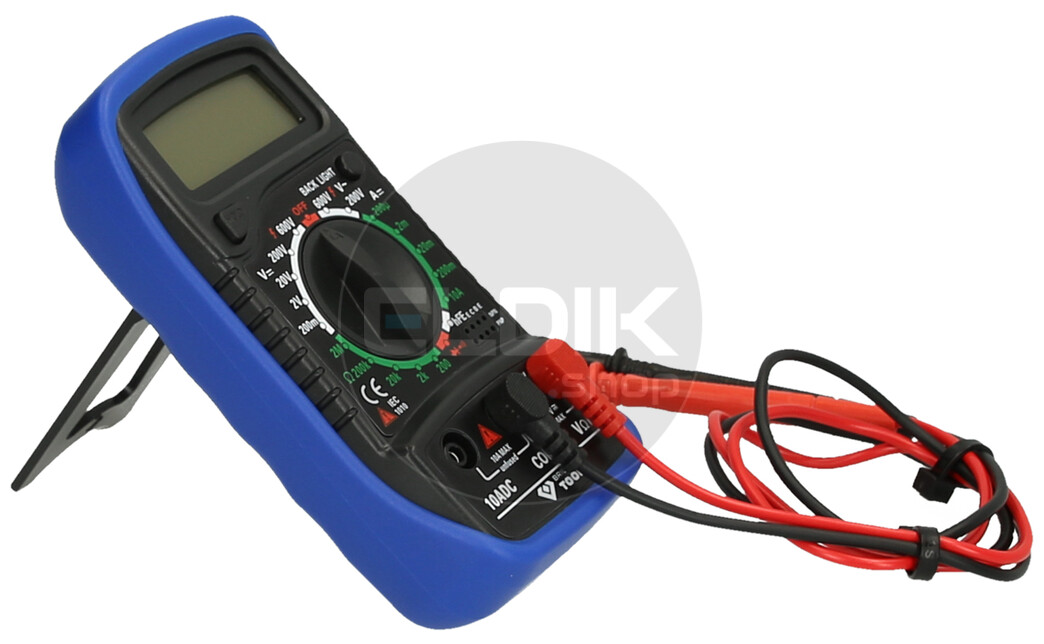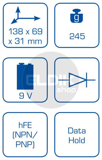 - Overlastbeveiliging bij de meting van AC/DC-spanning, AC/DC-stroom, weerstanden, capaciteit, dioden, logicatests en doorgangstest