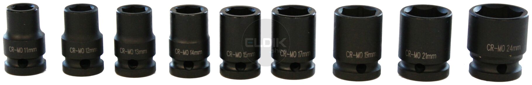 - Krachtdoppen 1/2": 11, 12, 13, 14, 15, 17, 19, 21, 24 mm