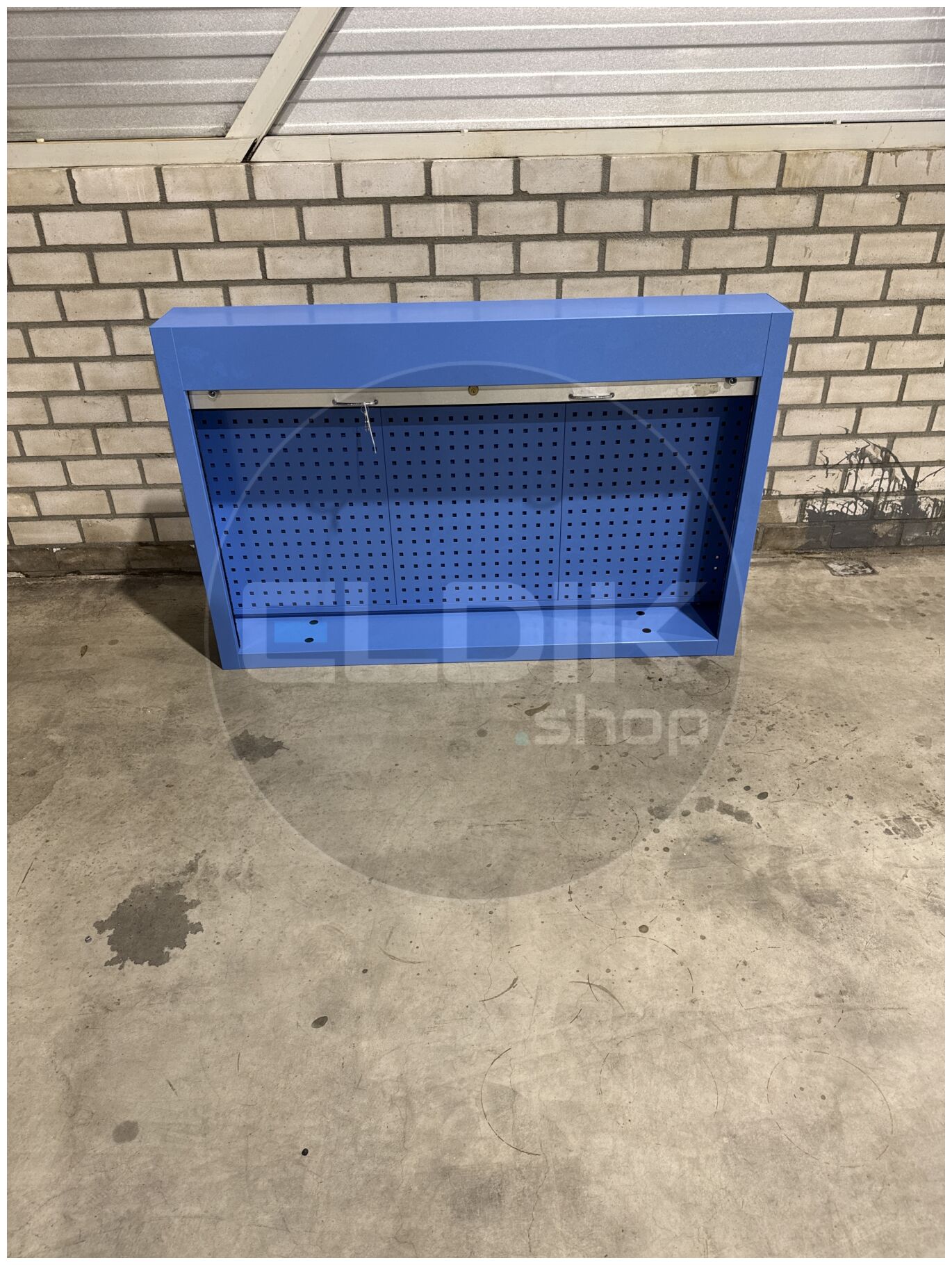afsluitbaar aluminium rolluik en slim geperforeerde achterwand biedt deze kast een veilige en overzichtelijke opslag voor gereedschappen en accessoires.
