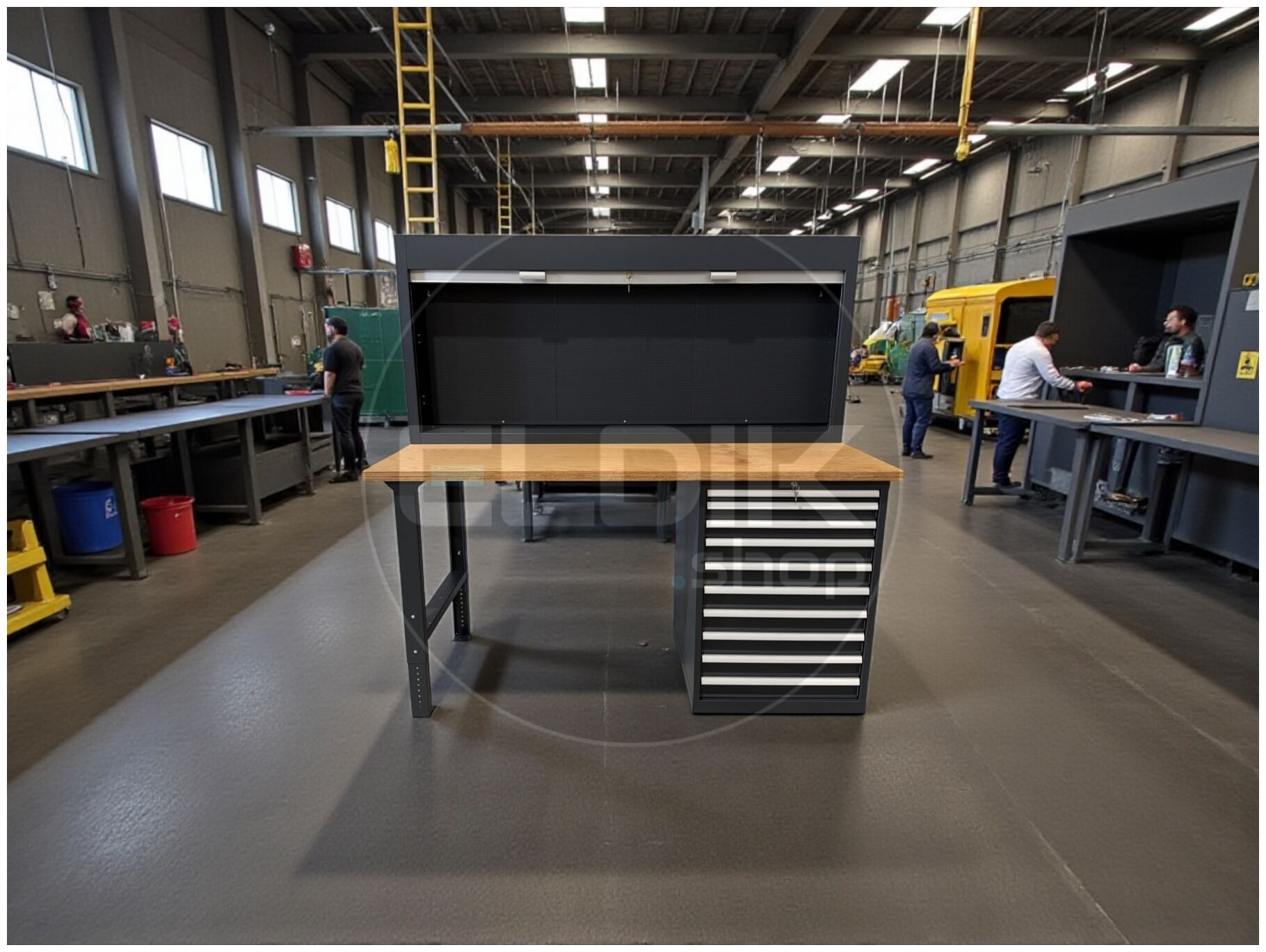 E-Tools | premium line 77724 Werkbank met Kast en Gereedschapswand | B2000 x D800 x H1040 mm | 10 laden