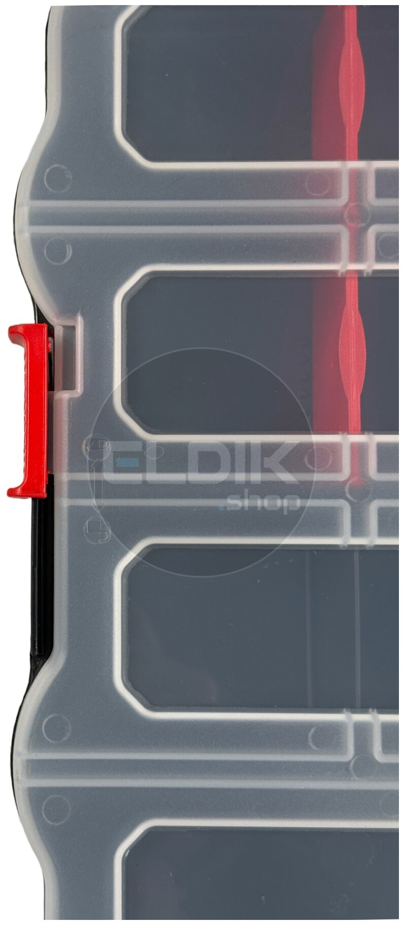 De E-Tools Sorty XL assortimentsdoos is een ruime en robuuste kunststof opbergbox voor het sorteren en bewaren van kleine onderdelen zoals schroeven, bouten, moeren, ringen of electrische componenten. Met zijn afmetingen van 470 x 373 x 80 mm biedt deze XL doos extra veel ruimte vergeleken met de Sorty M en Sorty L varianten. De doos heeft twee schuifgrepen waarmee je hem veilig kunt afsluiten en eenvoudig meerdere Sorty dozen aan elkaar koppelt. Hierdoor kun je dozen met verschillende soorten materialen samen organiseren of transporteren. De transparante deksel geeft direct zicht op de inhoud, wat het snel terugvinden van onderdelen vergemakkelijkt.