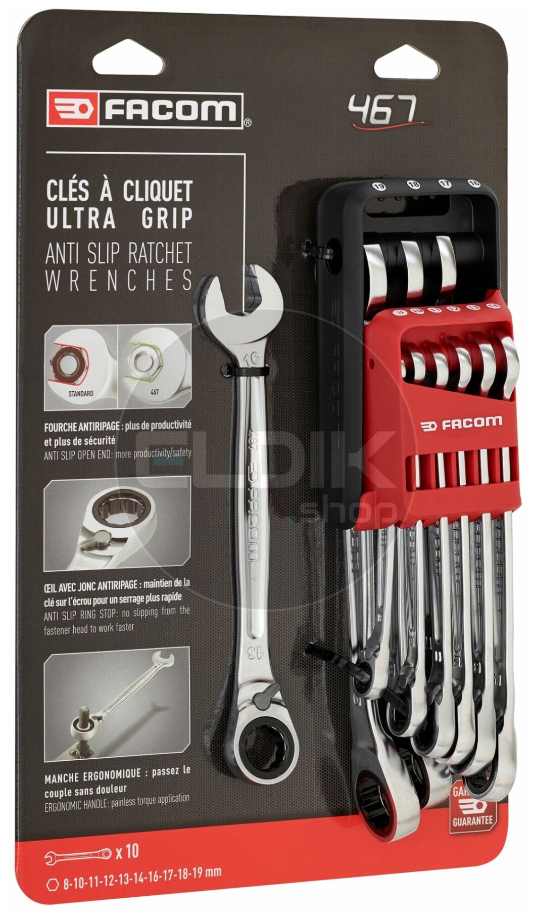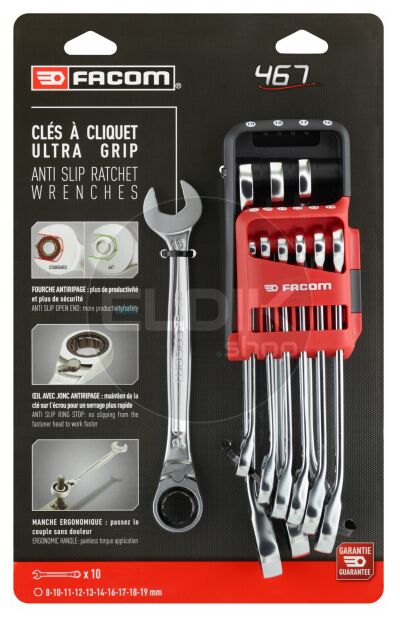 Facom 467B.JP10PB 10 Delige Ringsteeksleutelsset met Ratel