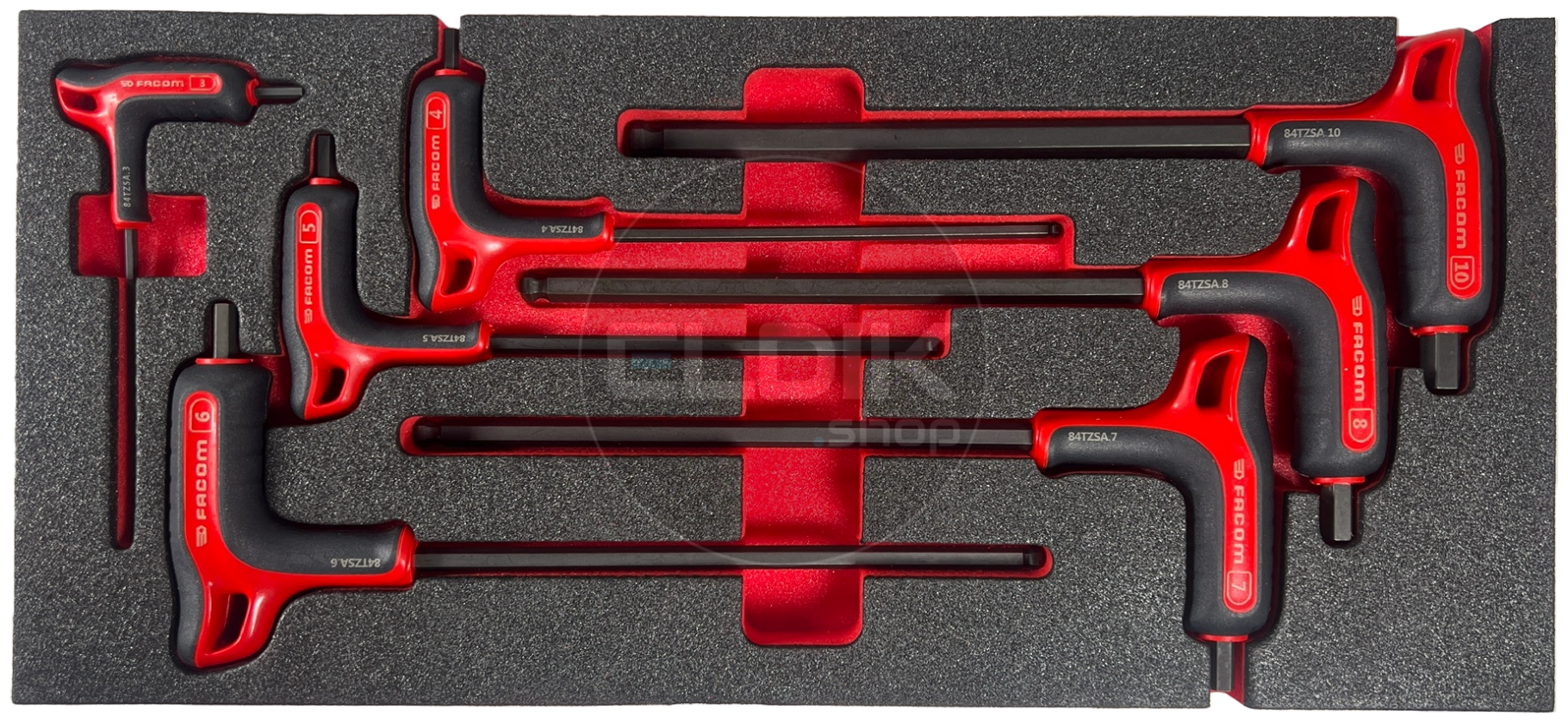Facom MODM.84TZSA Foam Module 7 Delige Inbussleutels met T- Greep, Bolvormige Kop