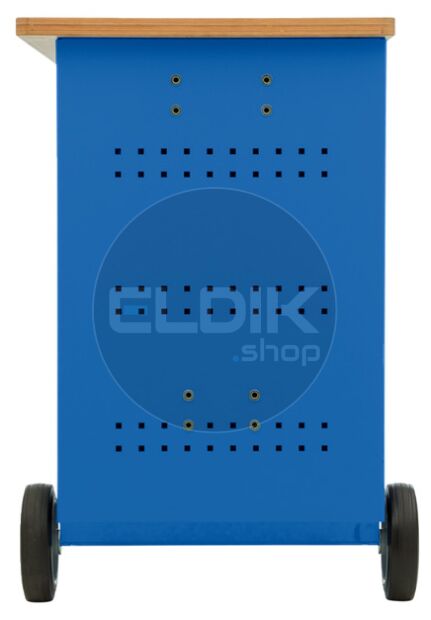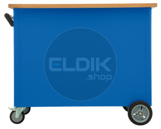De 6 ruime laden (tot 70 kg belastbaar) zijn volledig uittrekbaar, individueel vergrendelbaar en uitgerust met kogelgelagerde geleiderails voor soepel gebruik. Met de rij-stuurhandgreep en hoogwaardige wielen blijft de werkbank zelfs onder zware belasting lichtlopend, wendbaar en spoorvast.
