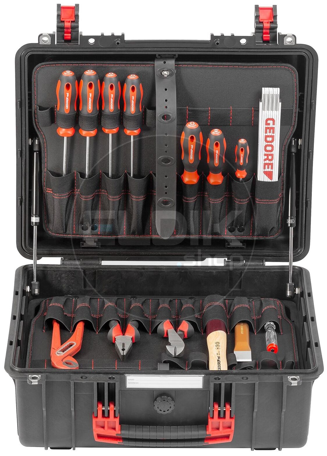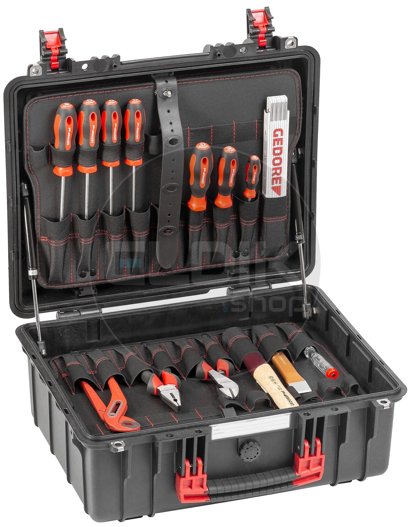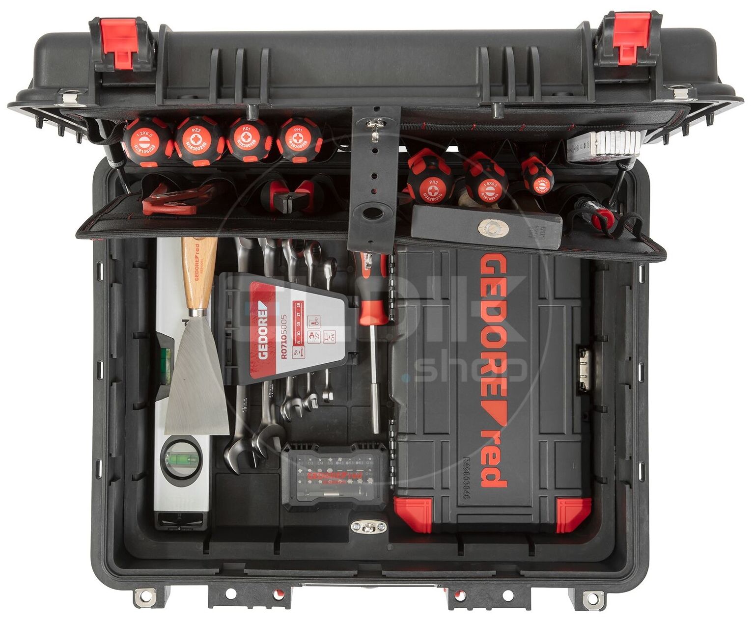 De Gedore MEISTER XL Though Case is een uitgebreide 101-delige gereedschapset, samengesteld voor de allround vakman. Deze set bevat alles wat u nodig heeft om te schroeven, losmaken, snijden, meten en monteren – ideaal voor gebruik op de bouwplaats, in de werkplaats of onderweg.