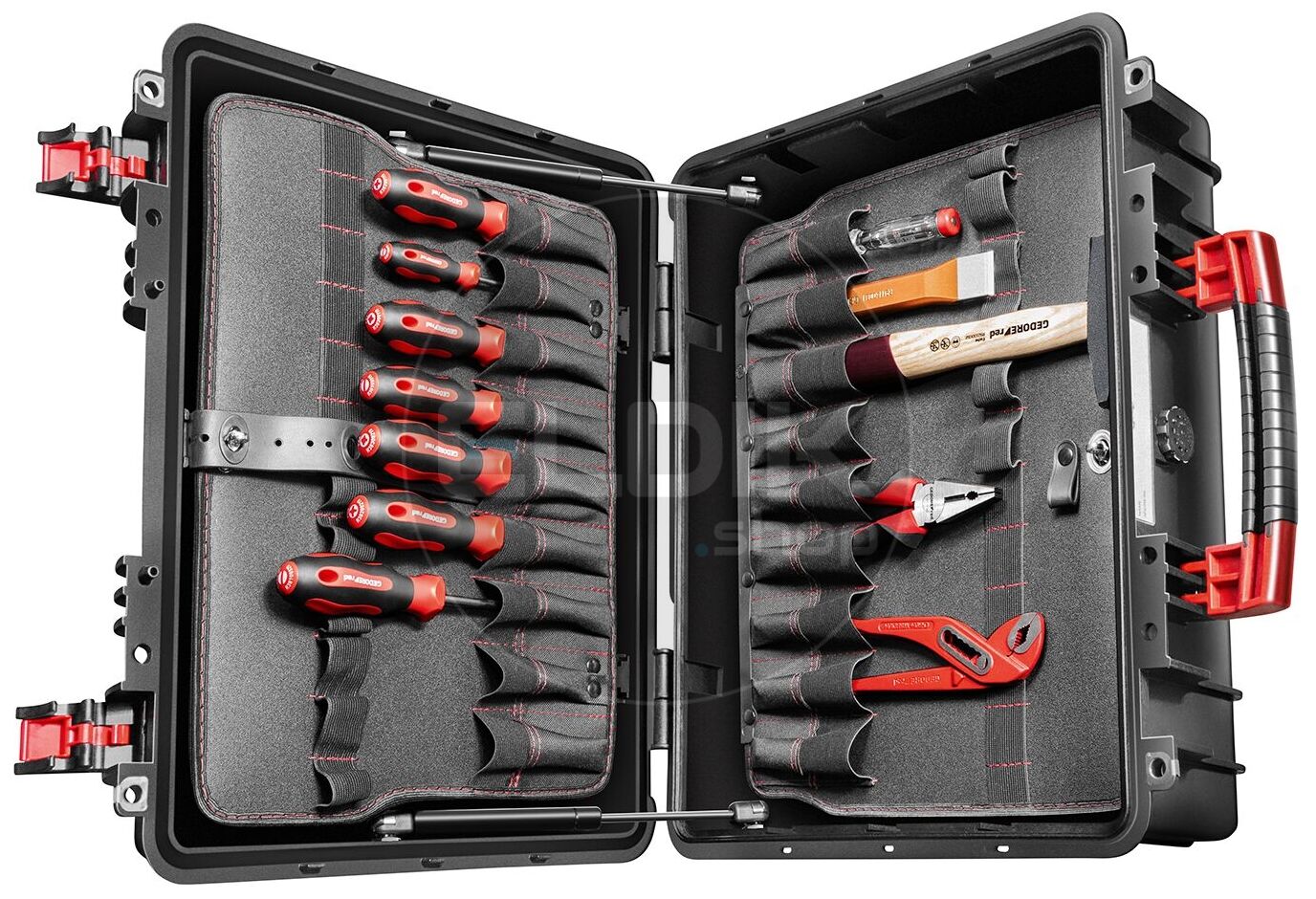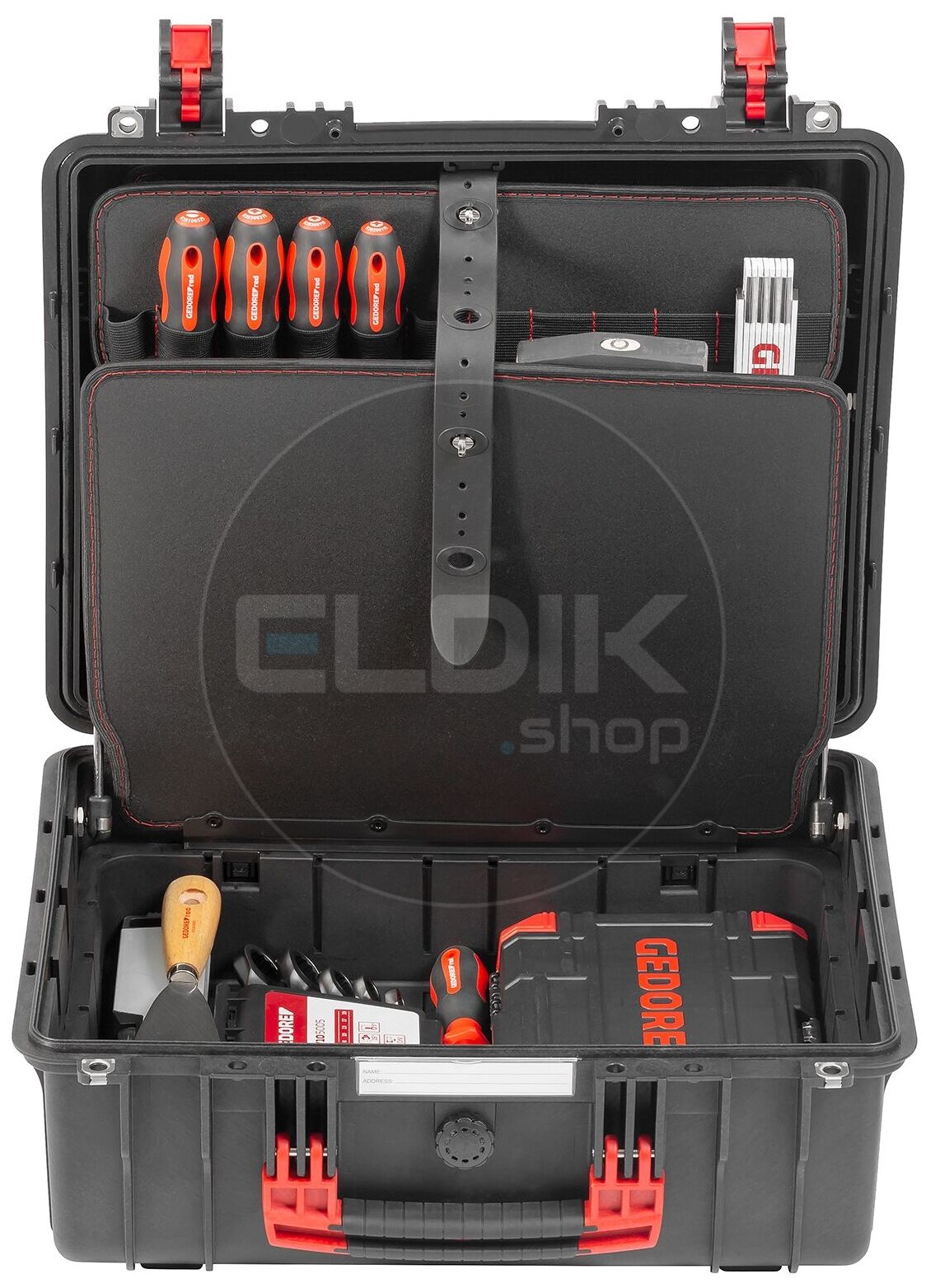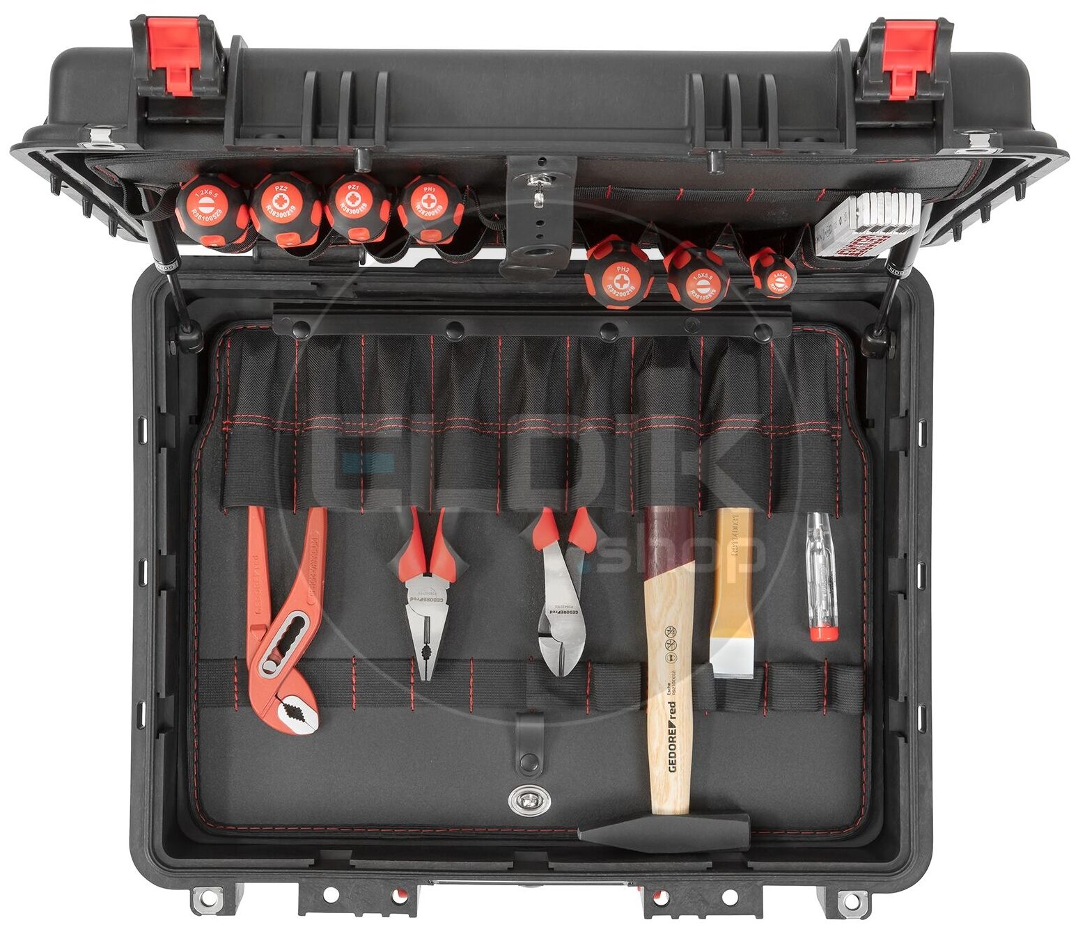 De Gedore MEISTER XL Though Case is een uitgebreide 101-delige gereedschapset, samengesteld voor de allround vakman. Deze set bevat alles wat u nodig heeft om te schroeven, losmaken, snijden, meten en monteren – ideaal voor gebruik op de bouwplaats, in de werkplaats of onderweg.