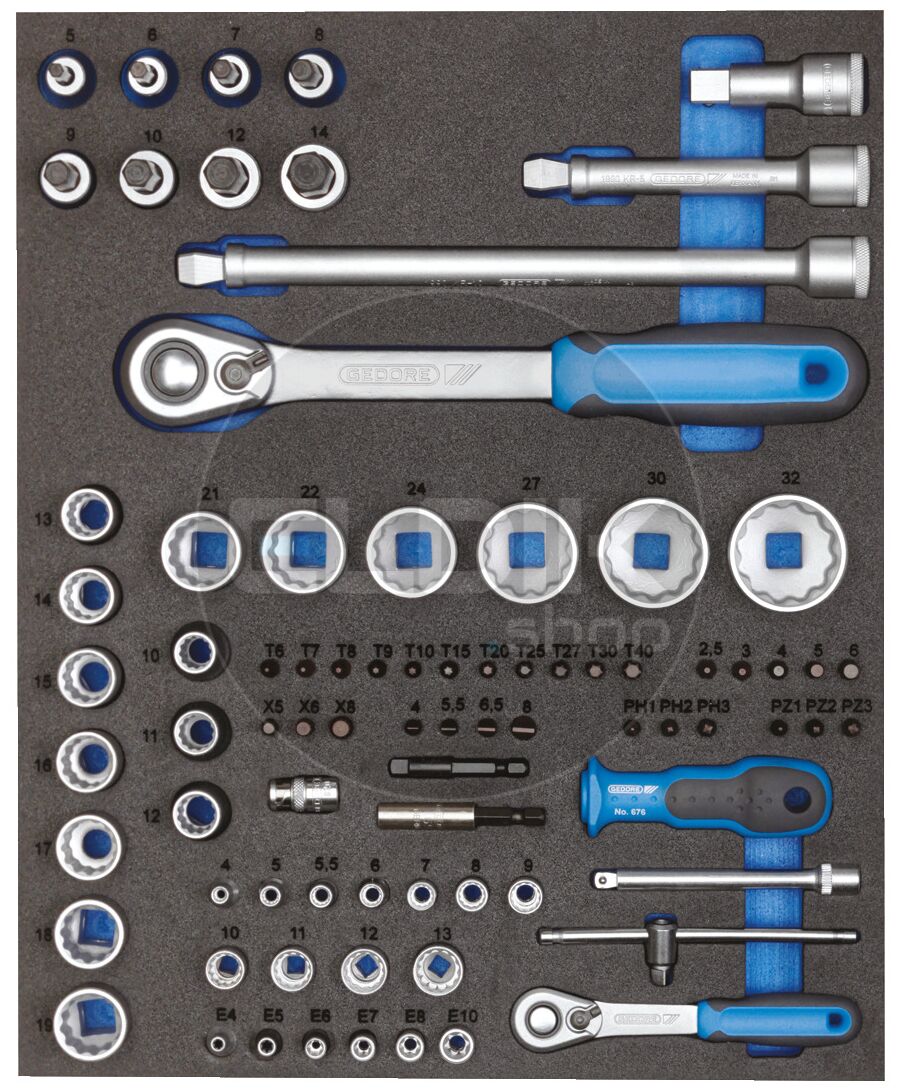 Gedore TS CT2-D19-D20 (2957191) Foam Module 81 Delige Dopsleutelset 1/4" - 1/2"