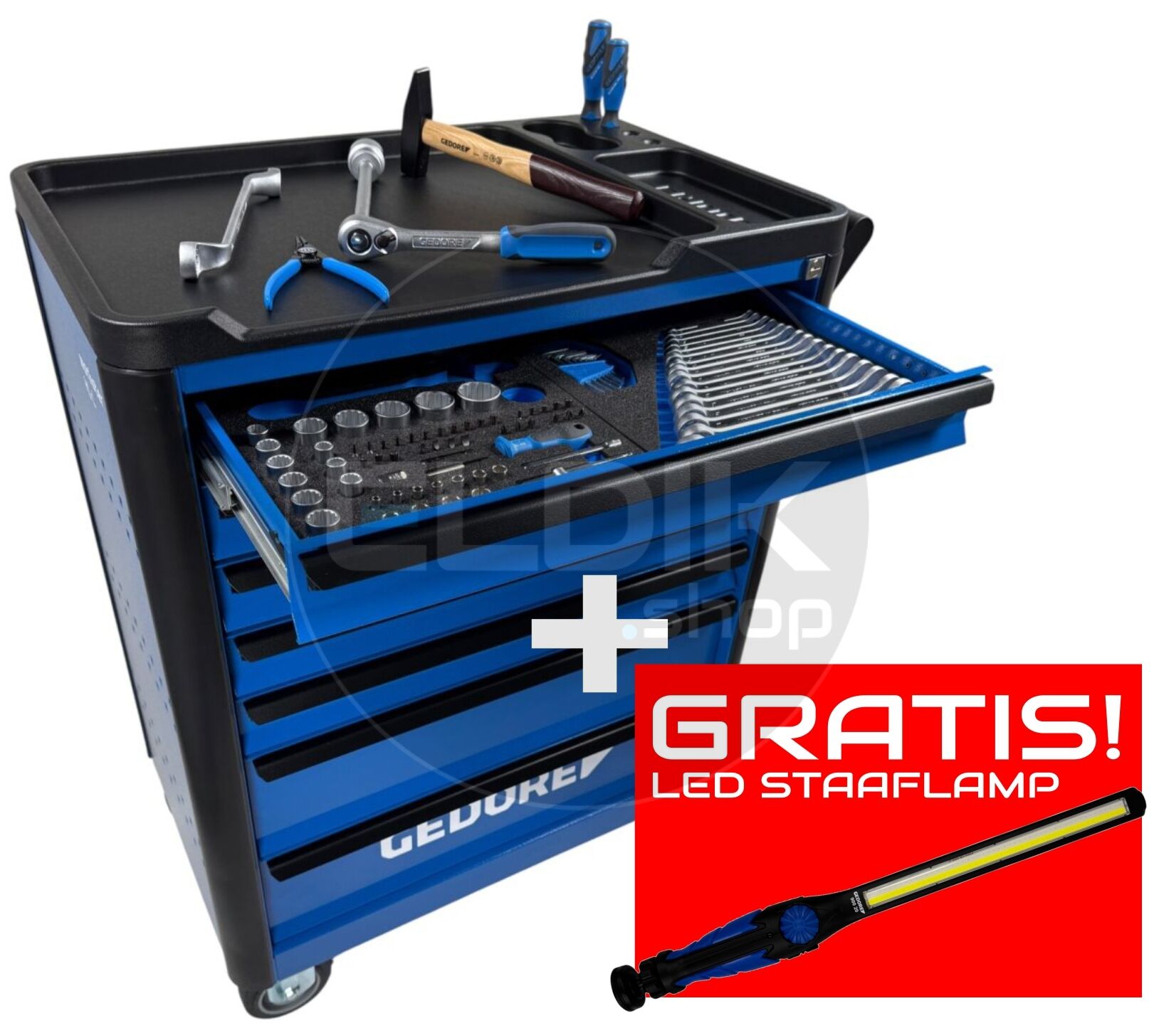 Gedore WHL-L-TS-147 (3082105) 147 Delige Gevulde Gereedschapwagen + gratis led staaflamp