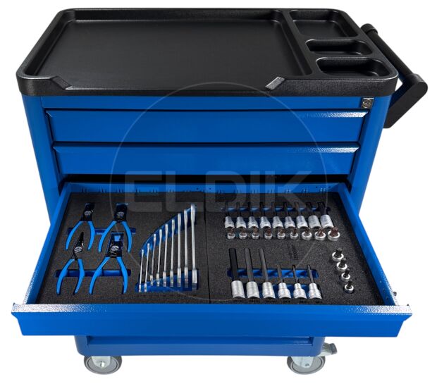De GEDORE WSL-L-TS-190 is een complete gevulde gereedschapwagen met 190 delen, speciaal ontworpen voor industrie, ambacht en automotive. De set bevat een veelzijdige selectie dopsleutels, ringsteeksleutels, schroevendraaiers, tangen en aanvullend handgereedschap – overzichtelijk opgeborgen in tweekleurige schuimstofmodules met Check-Tool-Systeem voor directe visuele controle op volledigheid.
