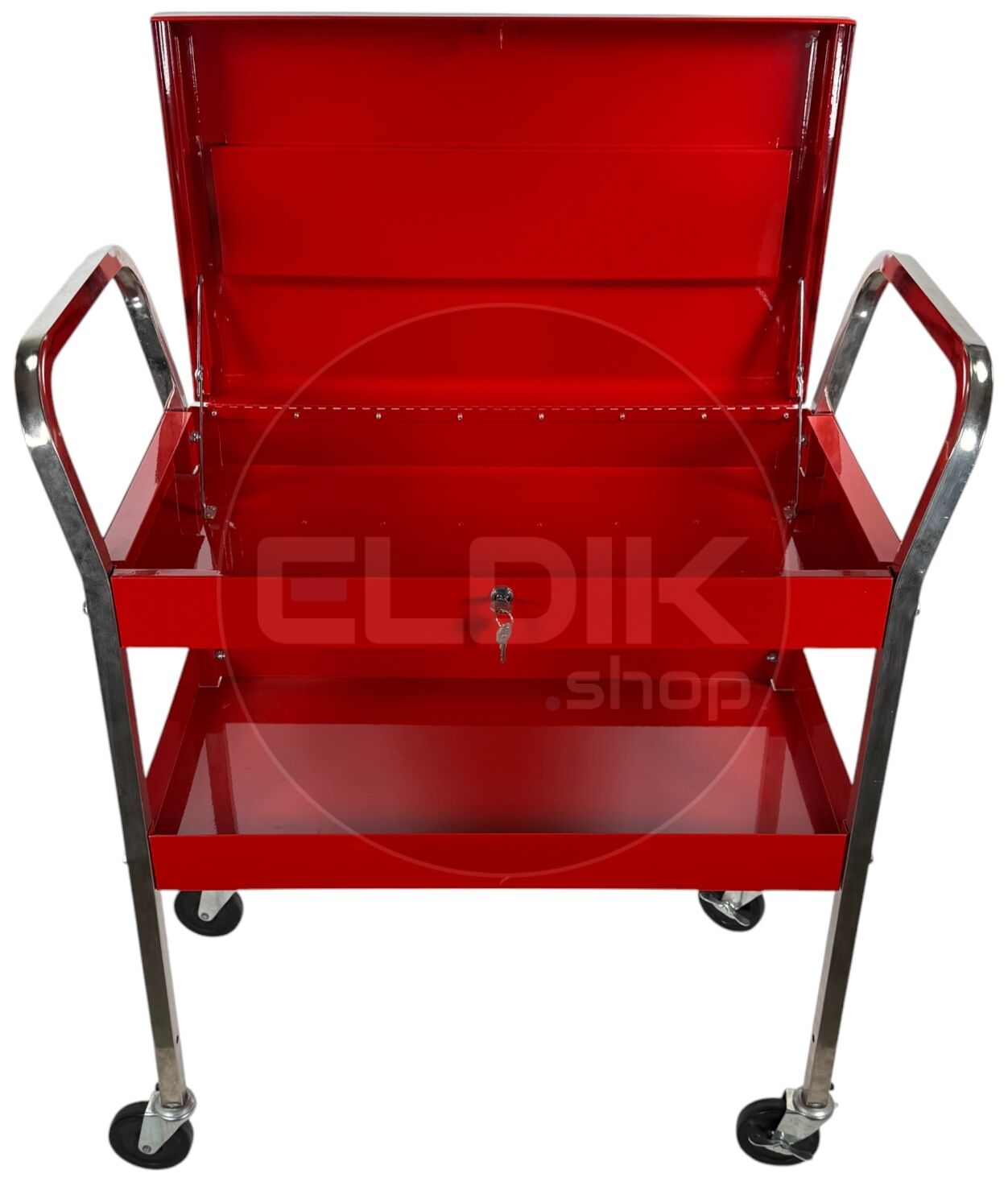 - Gereedschapswagen met geïntegreerde gereedschapskist en plateau