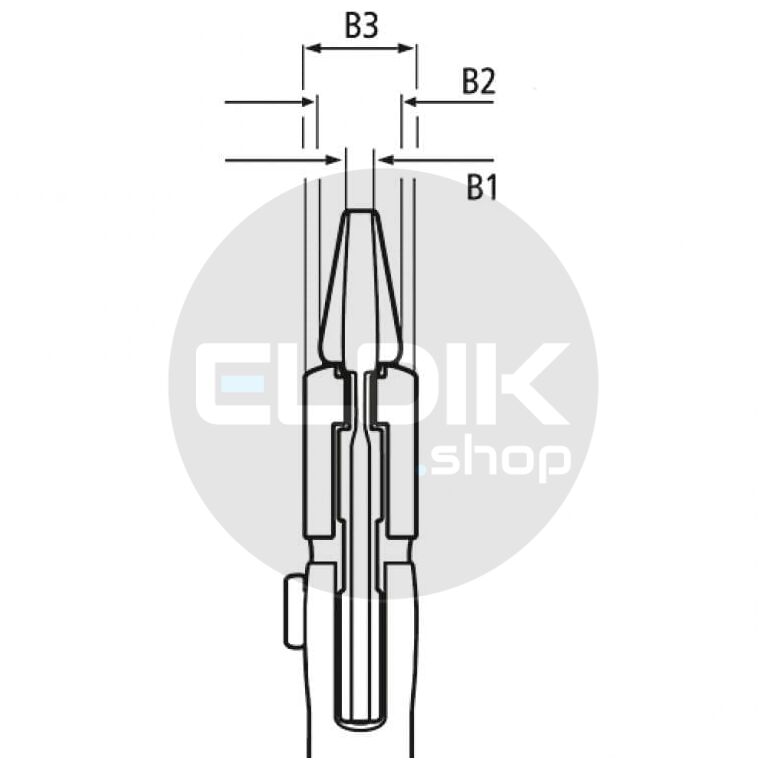 - Traploos klemmen van alle sleutelwijdtes tot de aangegeven capaciteit d.m.v. parallel staande bekken