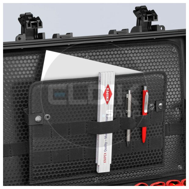 - Documentenvak + gereedschapsbord van vuilwerend PP met 42 opzetbare tassen en 67 gereedschapshoezen