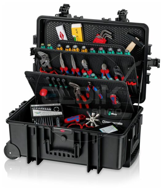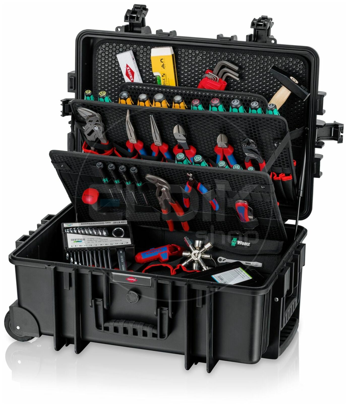 Robuuste en veelzijdige KNIPEX-gereedschapskoffer, ontwikkeld voor intensief gebruik in uiteenlopende vakgebieden. Met 12 KNIPEX-tangen en in totaal 90 merktools, stof- en waterdicht uitgevoerd en bestand tegen zware omstandigheden.