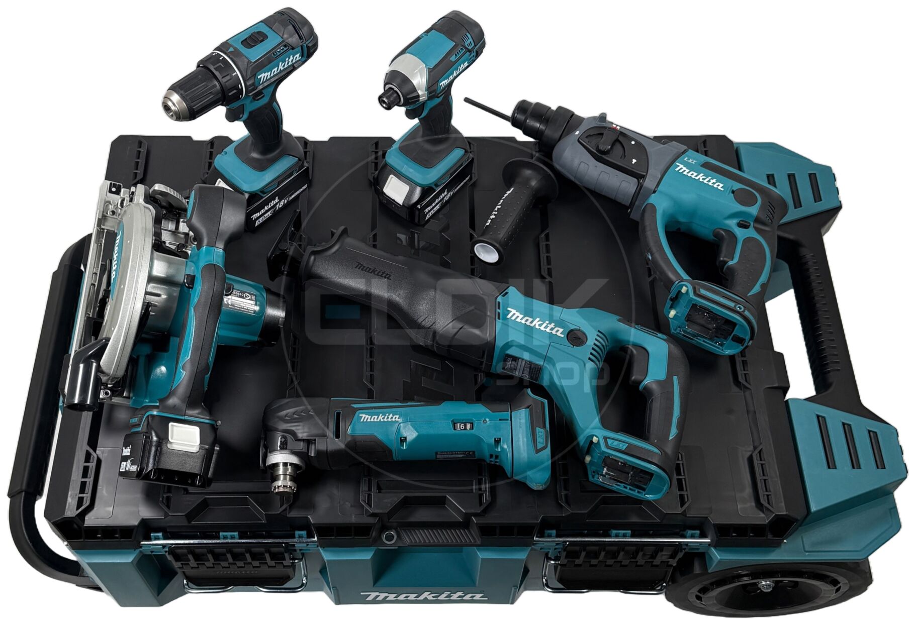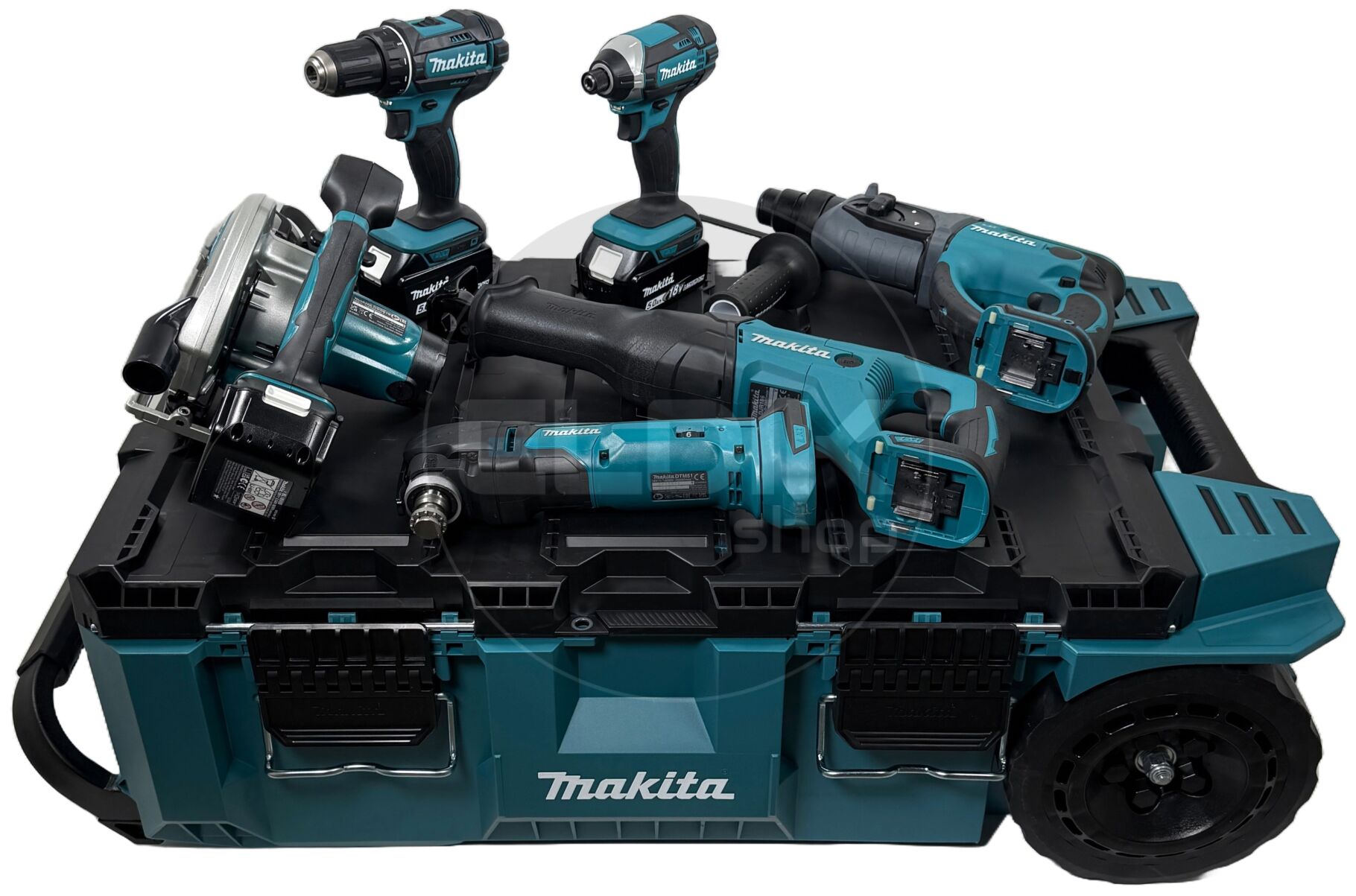 Makita DLX6038T-1 18V combiset – 6 machines + 3 accu’s + lader + Maktrak trolley