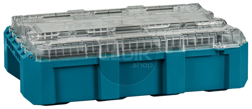 MAKTRAK Organizer Medium De MAKTRAK Maktrak Organizer Medium is een robuuste, modulaire opbergkist voor het overzichtelijk vervoeren en organiseren van accessoires, bevestigingsmateriaal en klein gereedschap. Deze organizer maakt deel uit van het MAKTRAK systeem en is eenvoudig te combineren met andere MAKTRAK kisten. Met een inhoud van 18,4 liter en een draagvermogen van 22,6 kg is hij verrassend ruim en geschikt voor intensief gebruik op de bouwplaats. Dankzij het transparante deksel is de inhoud in één oogopslag zichtbaar, zonder te openen. Toepassing Perfect voor vakmensen die dagelijks werken met veel losse onderdelen en klein gereedschap. De diepe, flexibele indeling en het heldere overzicht maken deze organizer ideaal voor zowel bouwplaats als businrichting. Het modulaire ontwerp wat eenvoudig met andere MAKTRAK modules is te combineren maakt het ideaal voor intensief gebruik op de bouwplaats én eenvoudig vervoer in werkbussen.