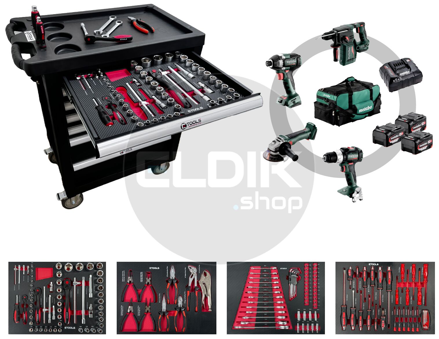 E-Tools 173207 154 Delige Gevulde Gereedschapswagen + Metabo 18V Combiset