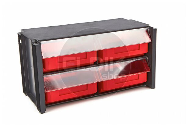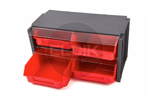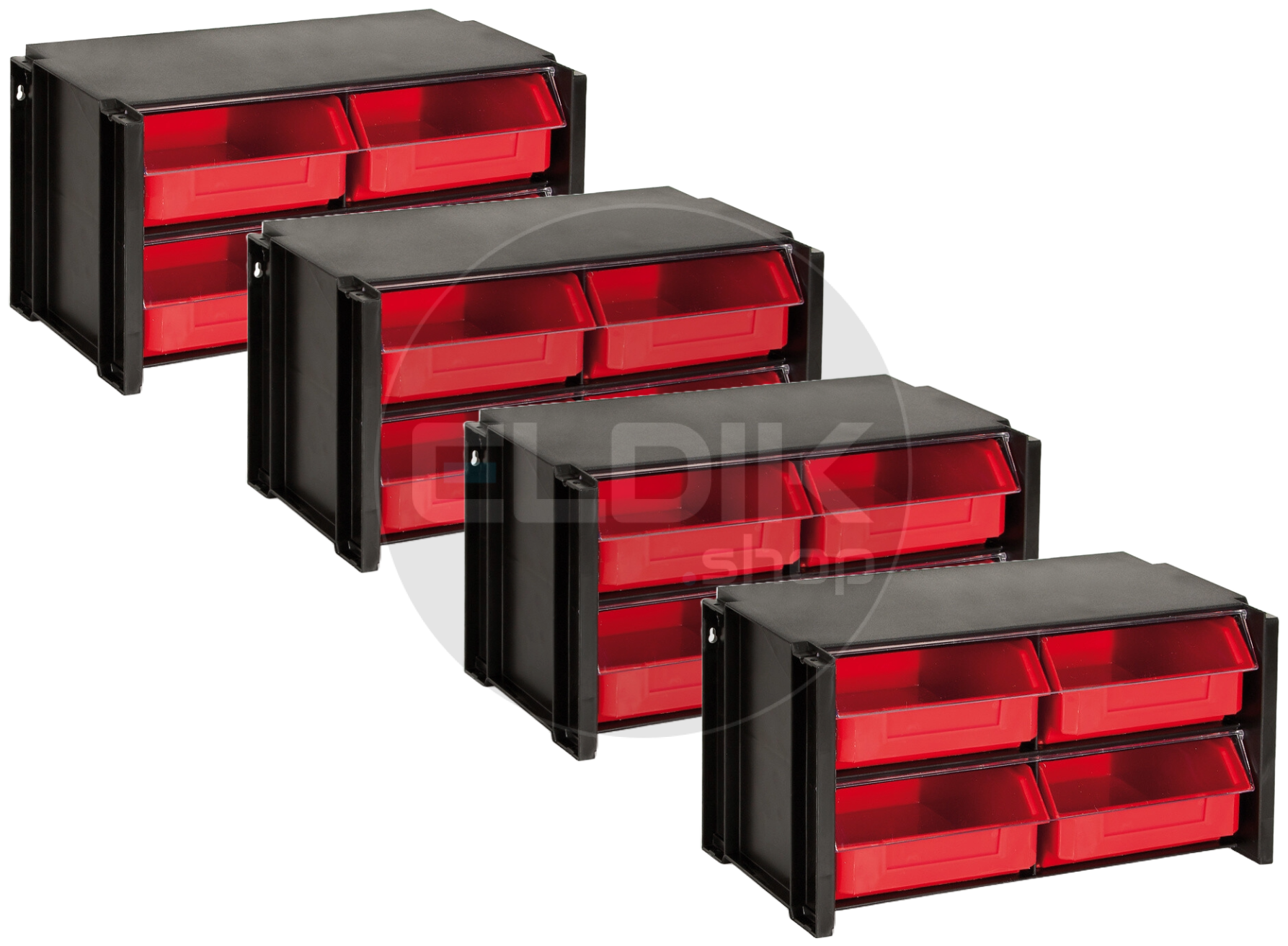 - Transparante klep per bak – beschermt de inhoud en houdt alles netjes op z’n plek