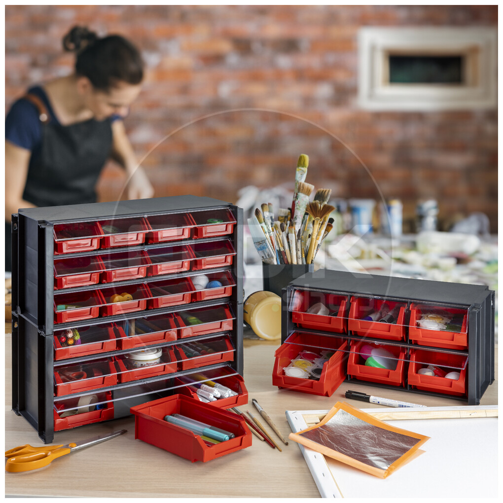 - Transparante klep per bak – beschermt de inhoud en houdt alles netjes op z’n plek