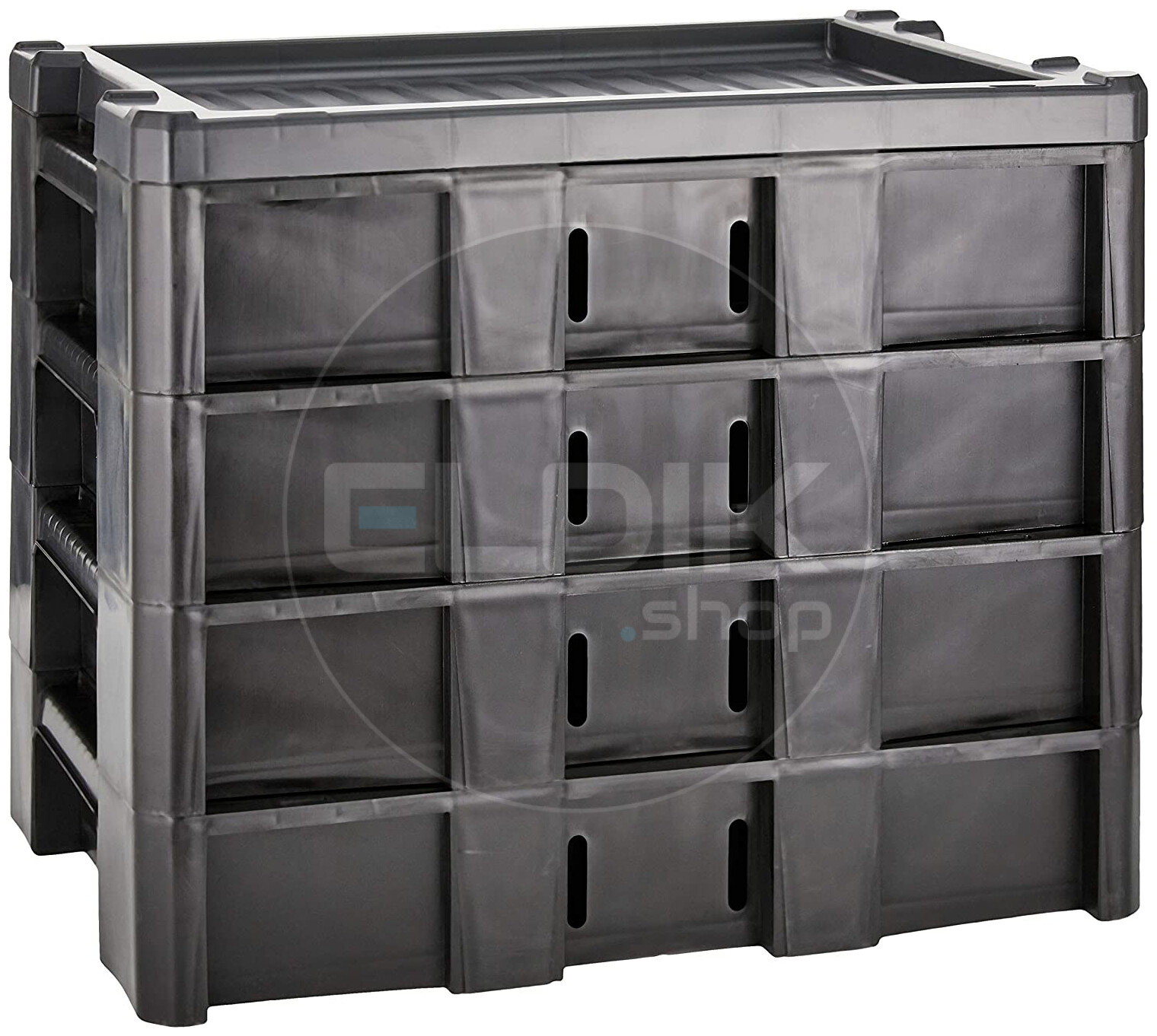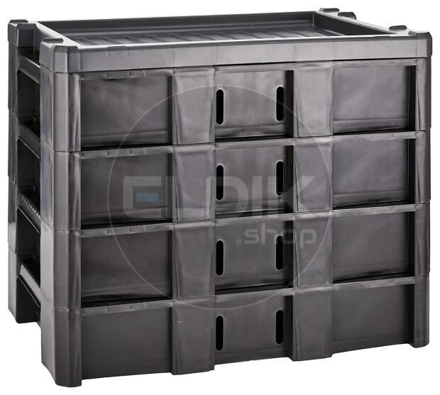 - Stapelbaar en eenvoudig te integreren in werkplaats of bedrijfswagen